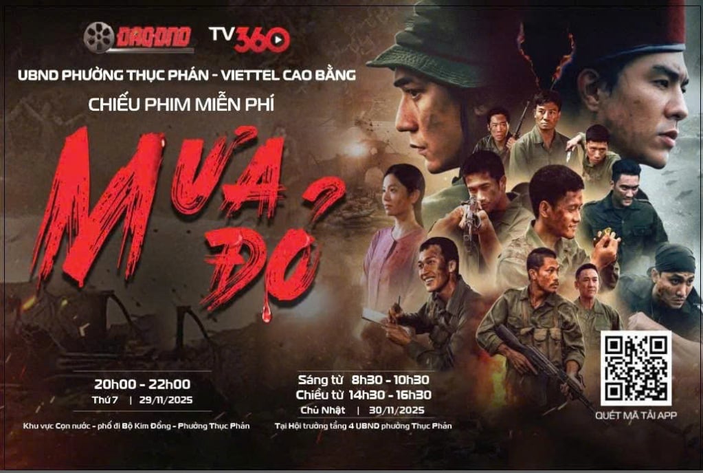 Увечері суботи, 29 листопада, під час прогулянок вулицею Кім Донг, фільм «Червоний дощ» буде безкоштовно показано на світлодіодному екрані у дворі Водяного колеса через додаток TV360 для людей та туристів. 30 листопада його продовжать безкоштовно показувати у Народному комітеті району Тхок Пхан.