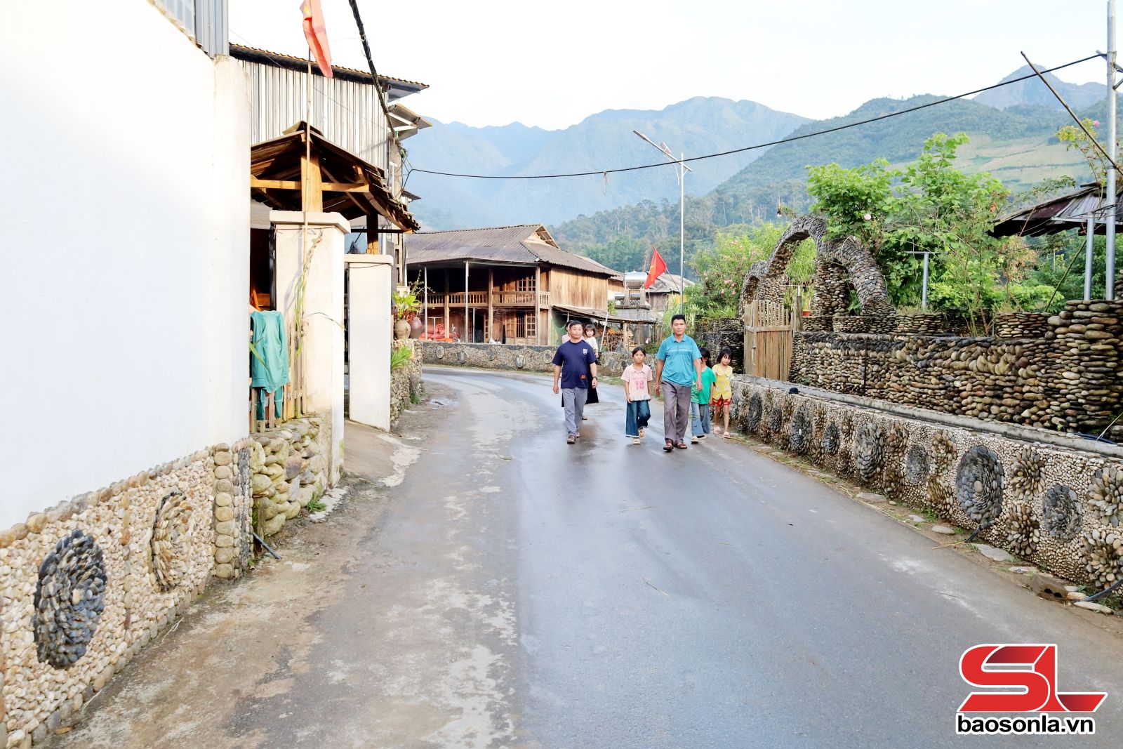 Нгок Чіен на початку зими, погода прохолодна, хмари пливуть по схилах гір, поля після збору врожаю вкриті блідо-жовтим кольором сухої соломи. Проїжджаючи через комуну Муонг Ла, йдучи звивистою бетонною дорогою, першою родзинкою, яка впадає в око, є майстерно збудовані сільські ворота. Різниця полягає в тому, що основним матеріалом тут є не цемент чи сталь, а десятки тисяч бруківки, зібраної людьми з струмків. Села Хуа Вай, На Тау, Луот, Пу О... всі мають унікальні кам'яні ворота. Камені майстерно розташовані та прикріплені до стовпів воріт, щільно та надійно прилягаючи.