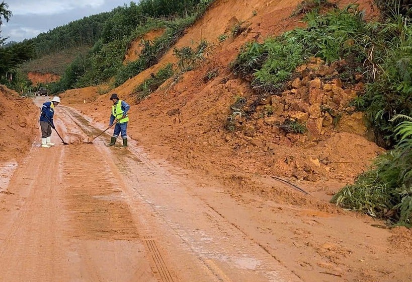 Рельєф місцевості фрагментований, ґрунт неміцний, існує потенційний ризик подальших зсувів, що робить його небезпечним для людей та техніки. Великий потік води та сильні течії спричиняють ерозію, змиваючи гірські породи та ґрунт, спричиняючи зсуви в багатьох місцях, перешкоджаючи проведенню арматурних та тимчасових ремонтних робіт. Погана погода впливає на видимість та умови роботи техніки, що призводить до ризиків для безпеки праці. У деяких районах трапляються перебої з електропостачанням та втрата місцевого зв'язку, що призводить до перебоїв у роботі управління на місці. Тому Акціонерне товариство з управління та будівництва доріг міста Хюе обмежує рух транспорту на маршруті Хошимін під час сильних дощів, як зараз.
