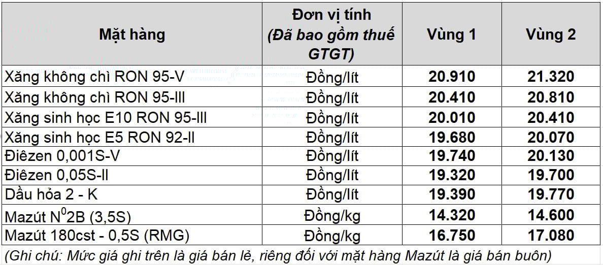 Для районів, віддалених від портів, віддалених від основних складів, віддалених від нафтовидобувних потужностей, як це передбачено пунктом 27 статті 1 Урядового декрету 95/2021/ND-CP від 1 листопада 2021 року (Petrolimex, що називається «Зона 2»); Генеральний директор Petrolimex уповноважує директорів нафтових компаній-членів Petrolimex безпосередньо визначати фактичну ціну продажу за місцем розташування бізнесу, але вона не повинна перевищувати рівень цін Зони 2, зазначений вище.