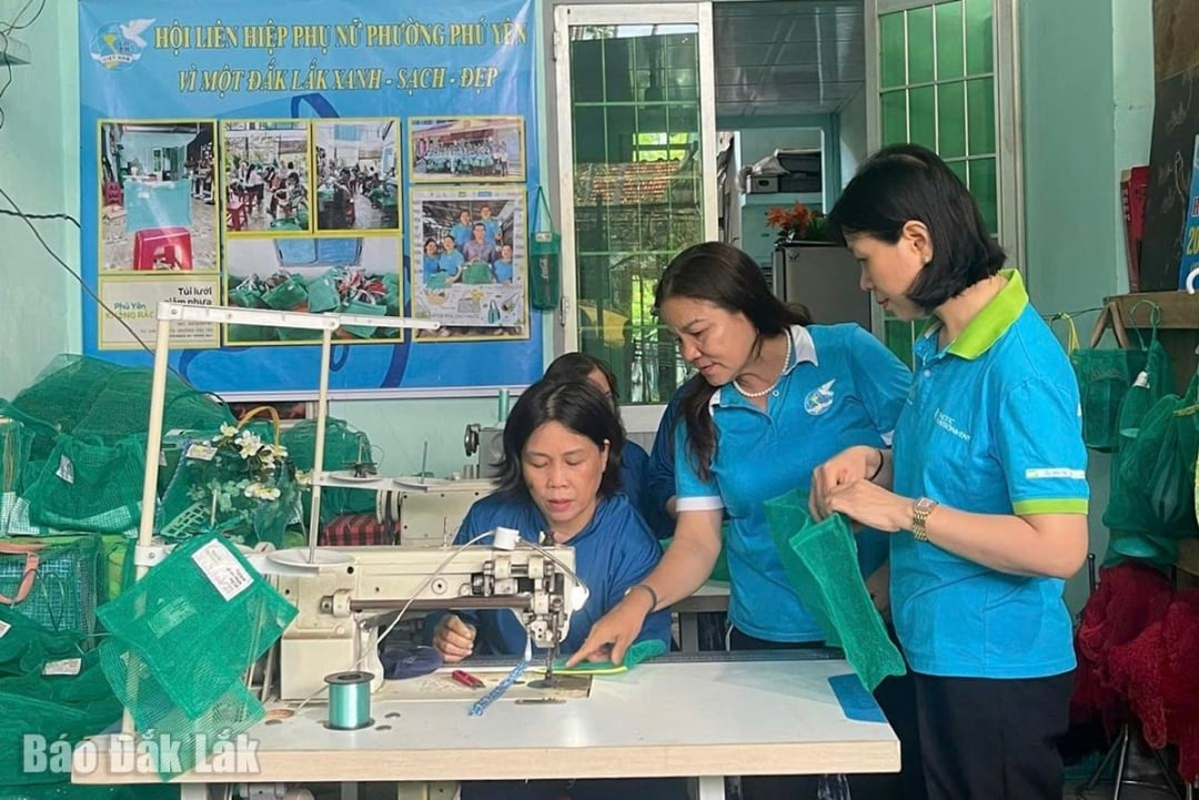 У тому ж дусі, члени жіночої асоціації району Пху Лам 1 (район Пху Єн ) впровадили модель «Сітчасті пакети для зменшення пластикових відходів», що сприяє зменшенню пластикових відходів у морському середовищі. Порвані рибальські сітки рибалок жінки переробляють у міцні, красиві та корисні сітчасті пакети. Модель створює стабільні робочі місця для понад 15 жінок з доходом близько 5 мільйонів донгів на місяць. Щоб заохотити рибалок обмежити засмічення та сформувати звичку сортувати сміття під час риболовлі, модель також підтримує встановлення сітчастих пакетів за палубою для збору сміття та його вивезення на берег.