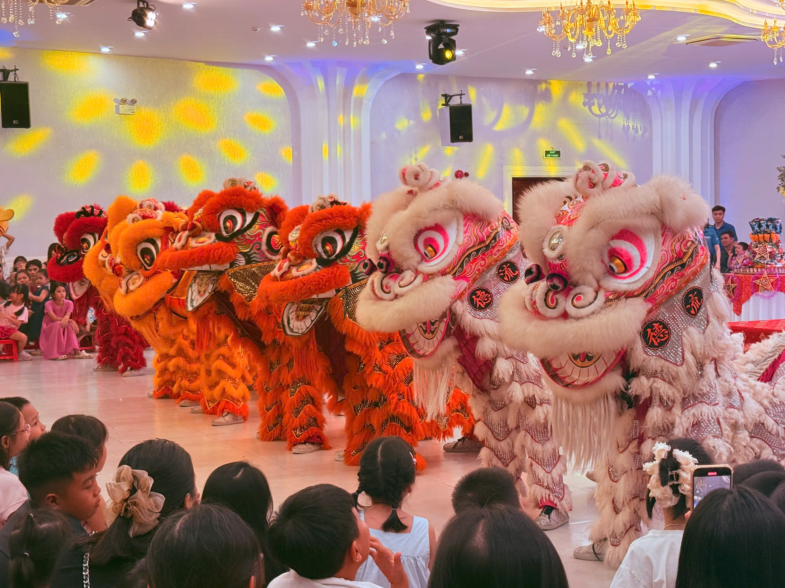 Програма проходила у двох знайомих місцях, Дунг Куат та Куанг Нгай, 1 та 2 жовтня 2025 року. Діти взяли участь у багатьох цікавих заходах та унікальних культурних виступах. Багато дітей сміливо та впевнено виконували яскраві танцювальні номери, створюючи радісну та теплу атмосферу фестивалю. Крім того, жваві танці левів і драконів, магічні шоу та підноси Свята середини осені, наповнені цукерками та тістечками, створили для дітей прекрасні та незабутні спогади дитинства.