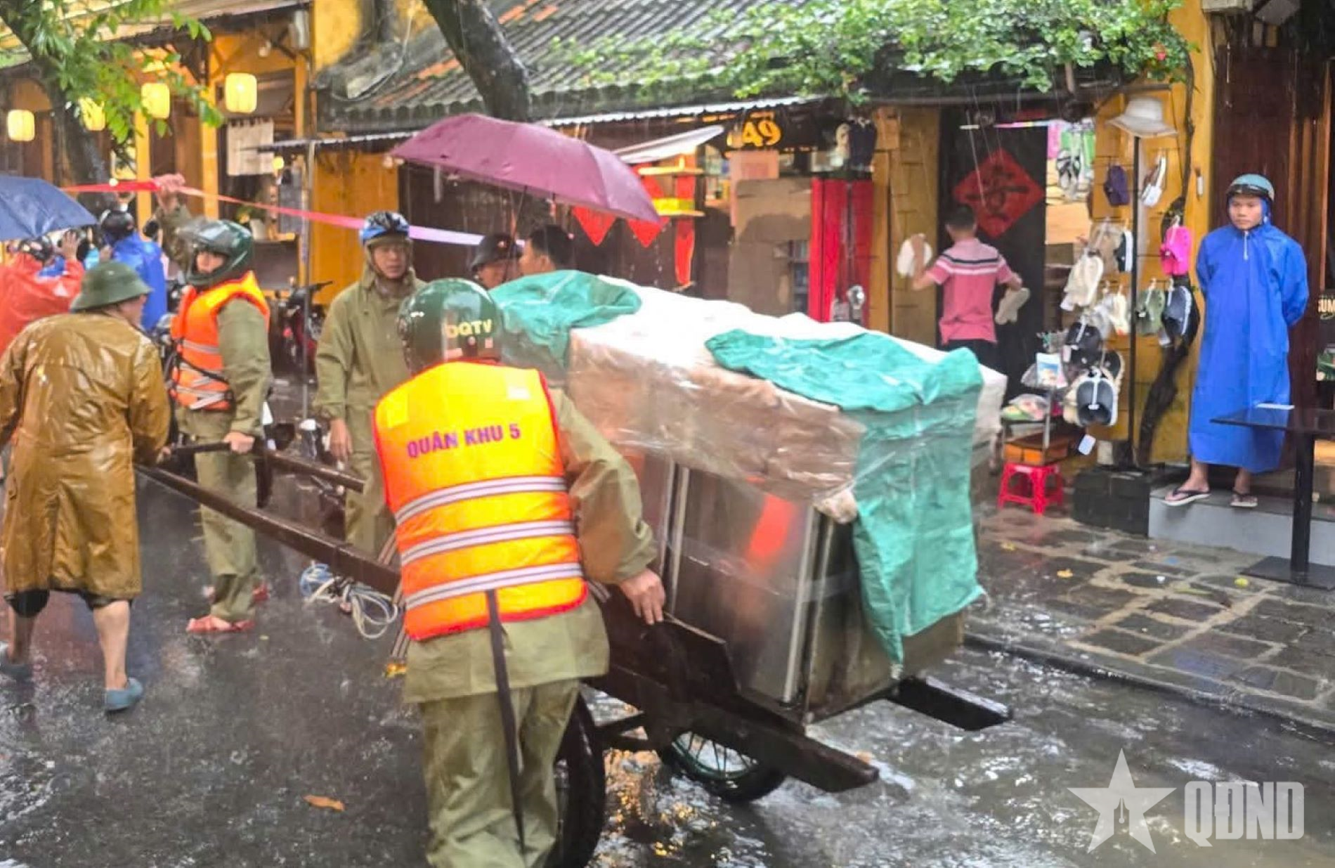 Офіцери та солдати Командування оборони регіону 5 – Дьєн Бан (військове командування міста Дананг) координували дії з іншими силами, щоб допомогти мешканцям району Хойан перемістити активи та майно в безпечне місце. |