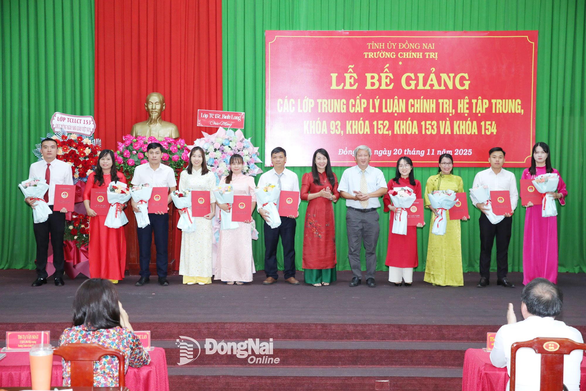 | Директор провінційної політичної школи Донгнай Фан Суан Лінь вручив випускникам сертифікати. Фото: Труонг Хієн |