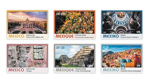 Шість марок присвячені історичному центру Мехіко, доіспанському місту та національному парку Паленке, біосферному заповіднику метеликів-монархів, доіспанському місту Ель-Тахін, хоспісам Кабанас у Гвадалахарі та історичному місту Гуанахуато. Ці місця є шістьма з 36 об'єктів Всесвітньої спадщини ЮНЕСКО у Мексиці.