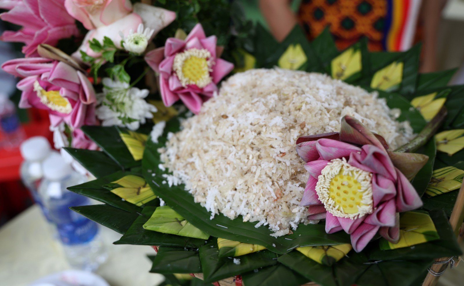 Люди приносять свіжосмажений клейкий рис, товчуть його, перетворюючи на ароматні клейкі зерна, щоб піднести його Богу Місяця. Це можливість для всіх разом повчитися, обмінятися досвідом у виробництві, насолодитися чашкою чаю, плющеним рисом та овочами, вирощеними власноруч.