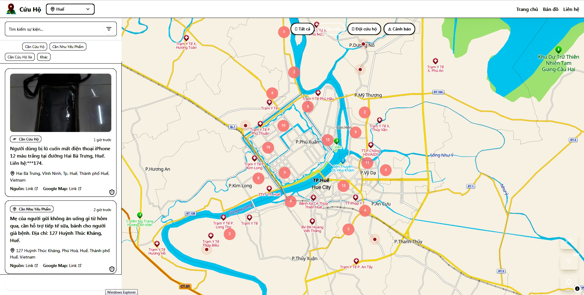 اگر آپ یا کسی عزیز کو بچاؤ کی ضرورت ہے، یا آپ کے پاس ریسکیو مقام/اسٹیشن ہے (اونچا، محفوظ علاقہ)، تو براہ کرم درج ذیل معلومات فراہم کریں: نام اور موجودہ حیثیت، خطرے کی سطح؛ تفصیلی پتہ بشمول: مکان نمبر، گلی، گاؤں/کمیون، وارڈ/پرانا ضلع، پرانا صوبہ/شہر (اگر دستیاب ہو تو گوگل میپ لنک کے ساتھ)؛ ریسکیو انفارمیشن پیج پر رابطہ کریں فون نمبر ، یا فین پیجز، فیس بک گروپس... معلومات خود بخود نقشے پر مرتب ہو جائیں گی۔ ہیو سٹی، دا نانگ سٹی اور کوانگ نام (پرانے) کے لوگ درج ذیل پتے تک رسائی حاصل کر سکتے ہیں: