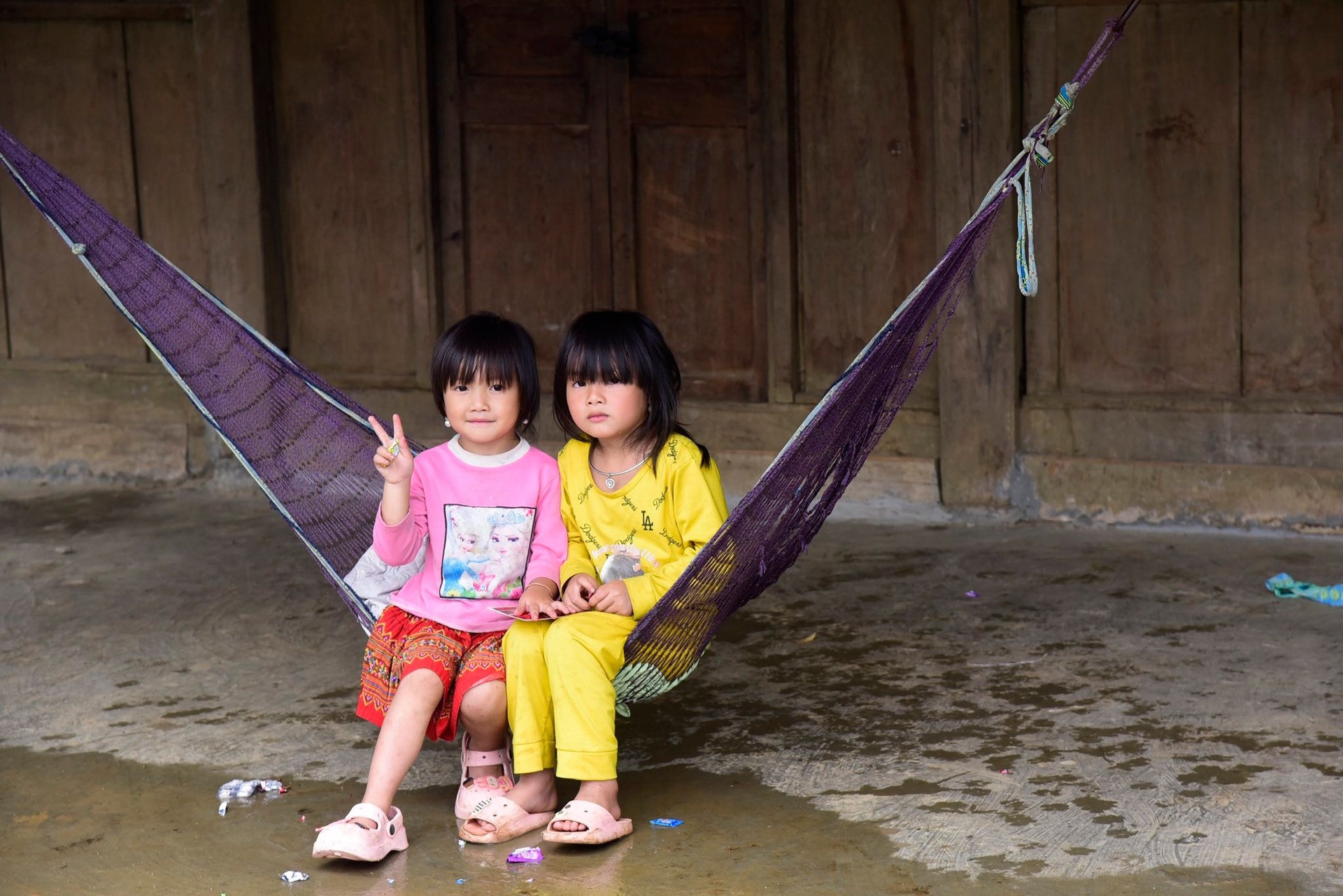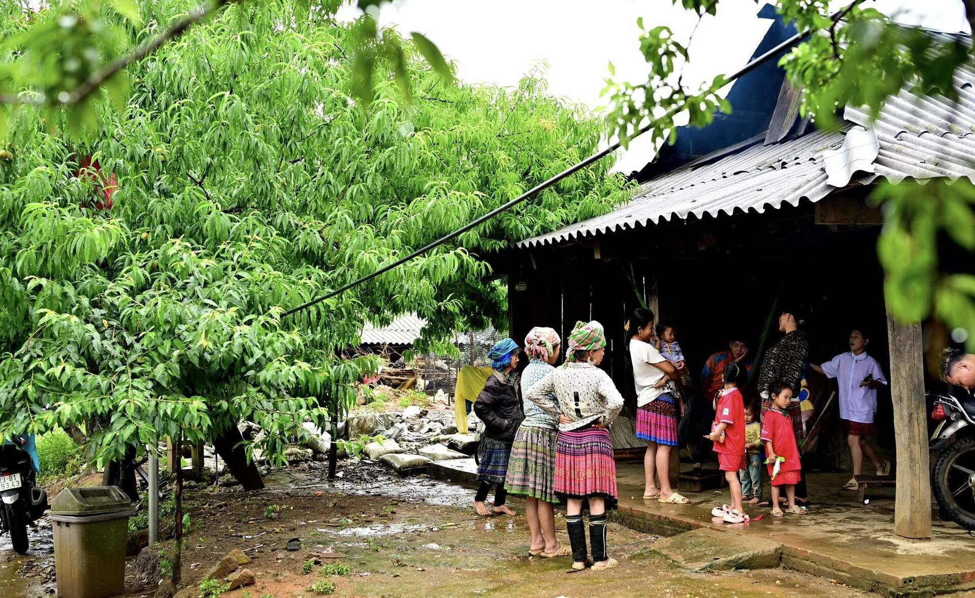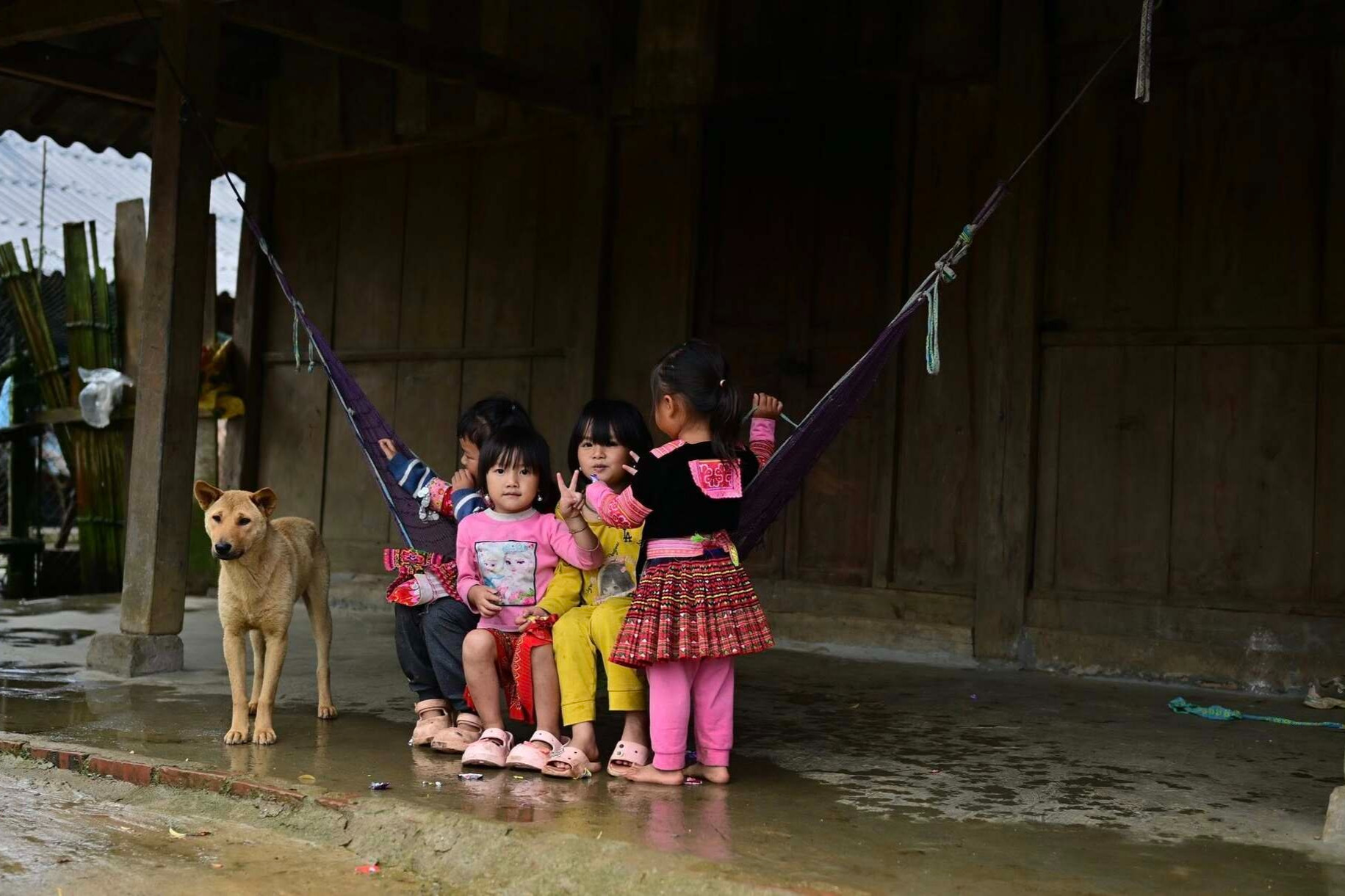 Cu Vai گاؤں میں بچے خوشی سے سیاحوں کا استقبال کر رہے ہیں۔ تصویر: این وی سی سی