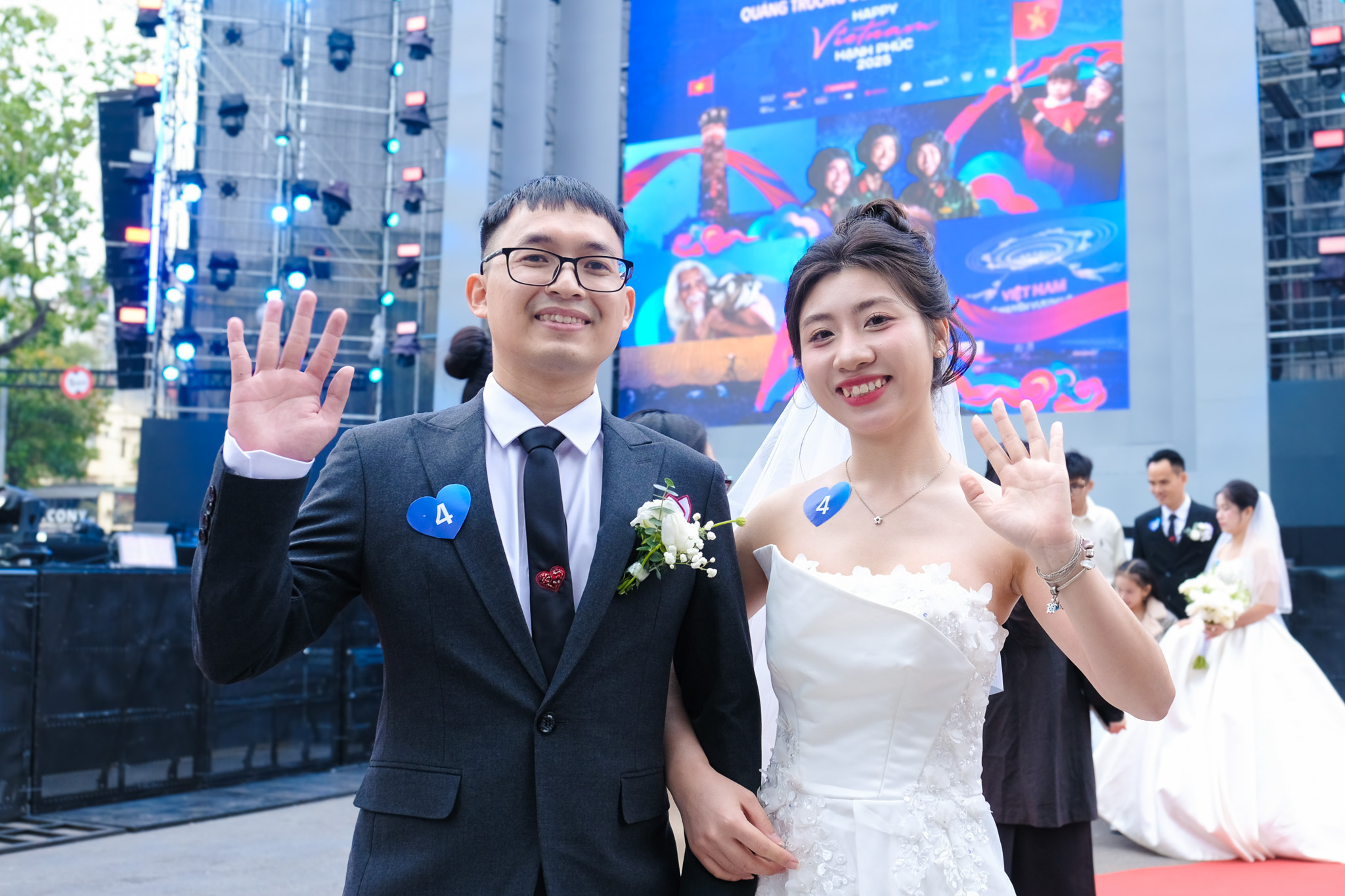 جوڑے Nguyen Thi Huong Giang اور Le Chi Minh Hoang اپنے خوشی کے دن - تصویر: HA QUAN