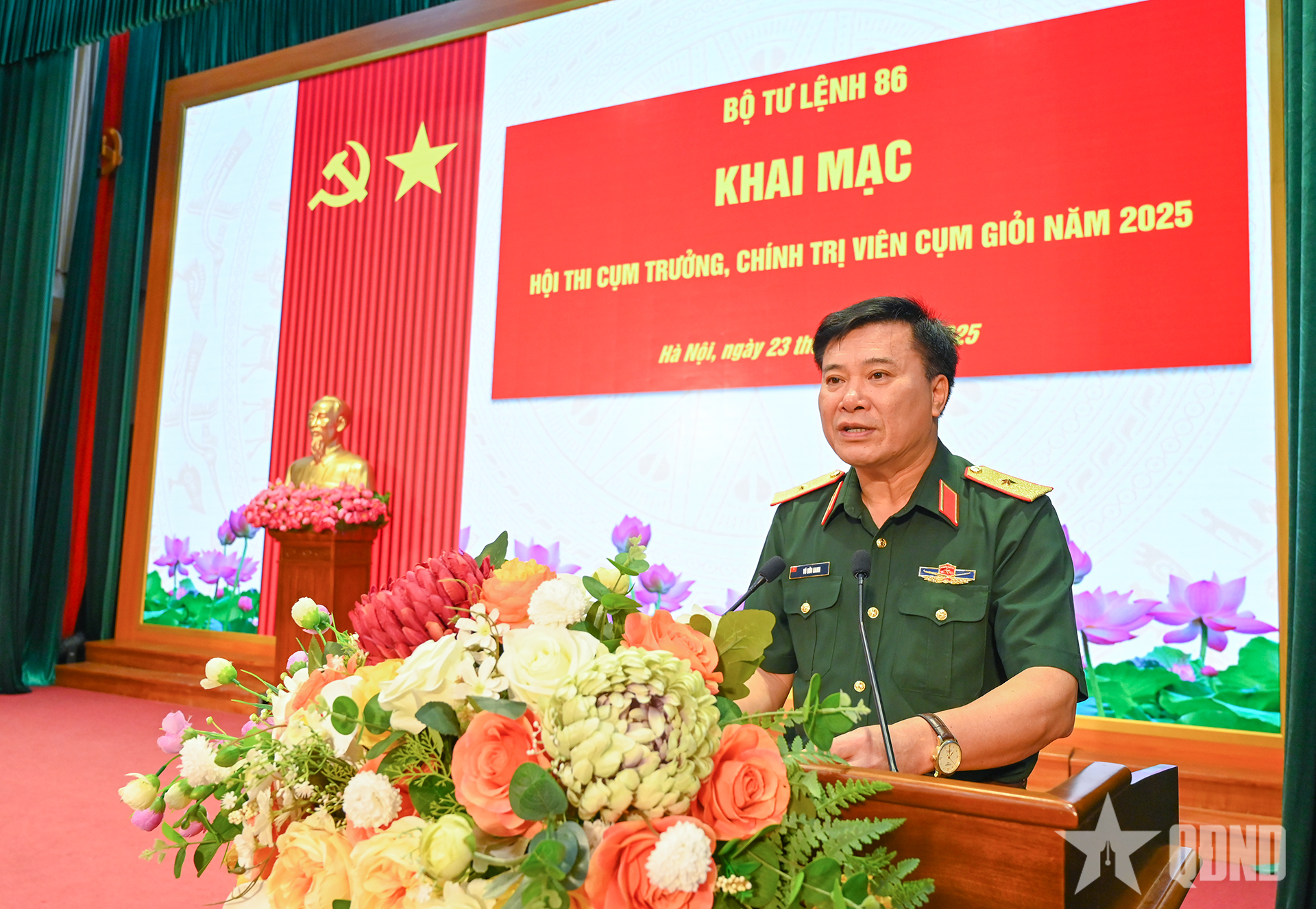 کمانڈ 86 کے کمانڈر میجر جنرل وو ہوو ہان نے بہترین کلسٹر لیڈرز اور پولیٹیکل کمیسرز کے 2025 کے مقابلے میں افتتاحی تقریر کی۔ |