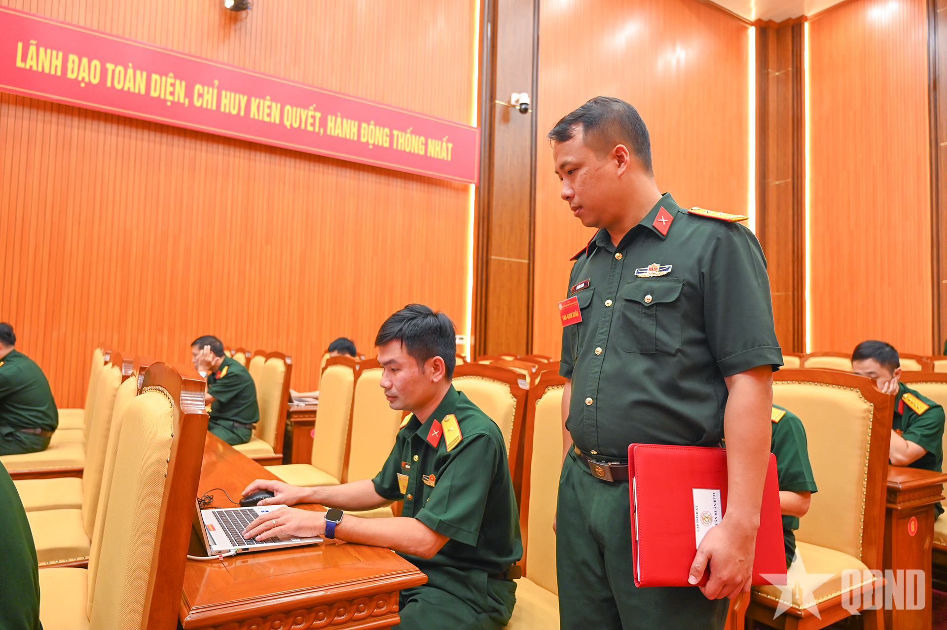 امیدوار جو پولیٹیکل کمیسرز یا ڈپٹی پولیٹیکل کمیسار ہیں امتحان کے 2 میں سے 1 عنوانات کا انتخاب کرتے ہیں: "کمانڈر کے جنگی منصوبے یا انفارمیشن ٹیکنالوجی کی یقین دہانی کے منصوبے کے ذریعے پارٹی سیل کانفرنس کی قیادت اور انتظام کرنے کے لیے قرارداد کا مسودہ تیار کرنا" اور "سالانہ کاموں کے نفاذ کی رہنمائی کے لیے قرارداد جاری کرنا"۔