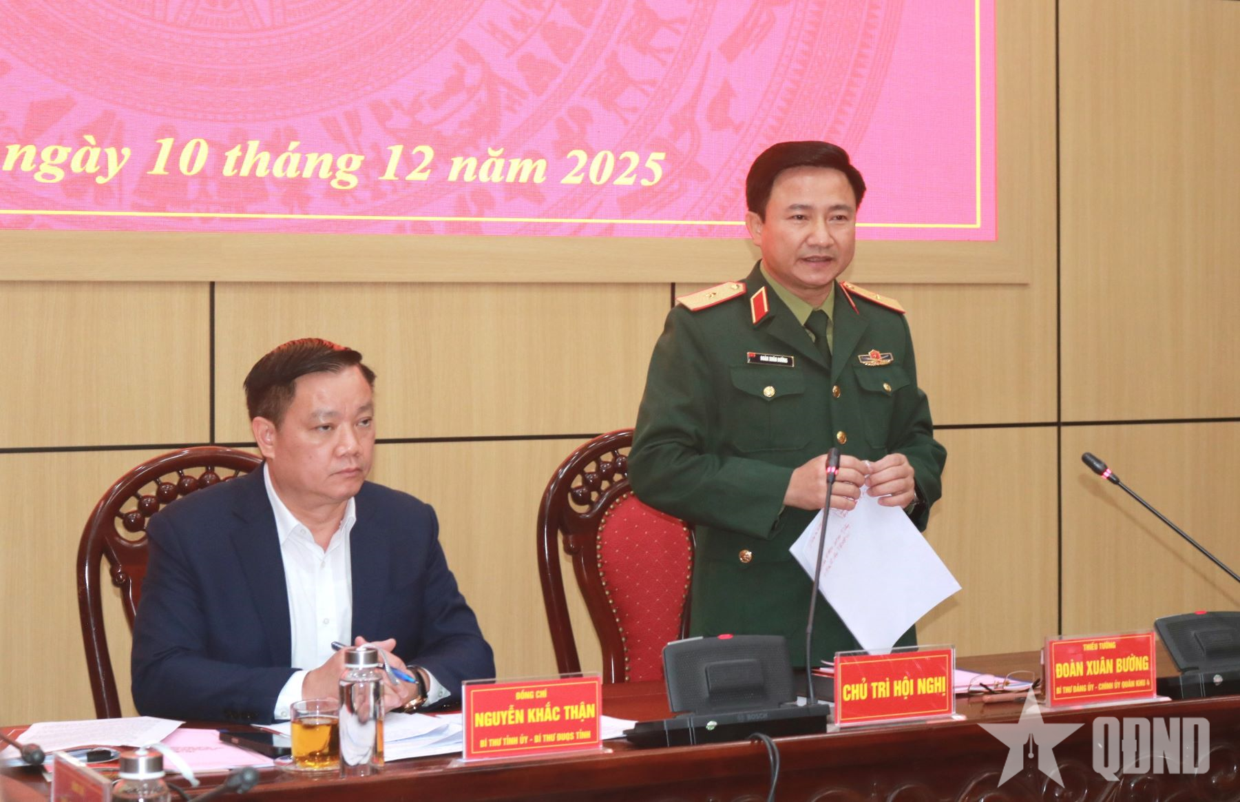 کانفرنس سے خطاب کرتے ہوئے، میجر جنرل Doan Xuan Buong نے 2025 میں Nghe An صوبائی ملٹری پارٹی کمیٹی کی قیادت، ہدایت، عمل درآمد اور منظم کیے جانے والے نتائج کو تسلیم کیا اور ان کی بہت تعریف کی۔