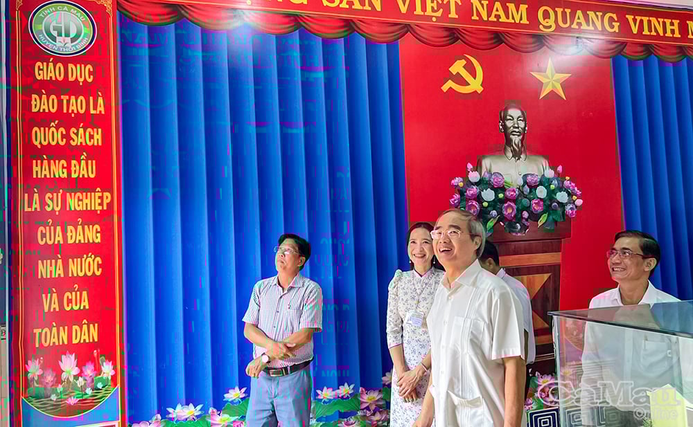 دورے کے دوران، کامریڈ Nguyen Thien Nhan نے اسکول کے عملے، اساتذہ اور طلباء کے ساتھ دوستانہ گفتگو کی۔ اچھی طرح سے لگائے گئے، صاف ستھرے اور خوبصورت سہولیات کو دیکھ کر خوشی کا اظہار کیا۔ متحد اور سرشار تدریسی عملہ؛ اچھی تربیت سے آگاہی کے ساتھ اچھے سلوک کرنے والے طلباء۔ انہوں نے امید ظاہر کی کہ اسکول مطالعہ کی مقامی روایت کو فروغ دیتا رہے گا، دوستانہ اور تخلیقی تعلیمی ماحول بنائے گا، اور نئے دور میں بنیادی اور جامع تعلیمی جدت کے تقاضوں کو پورا کرے گا۔