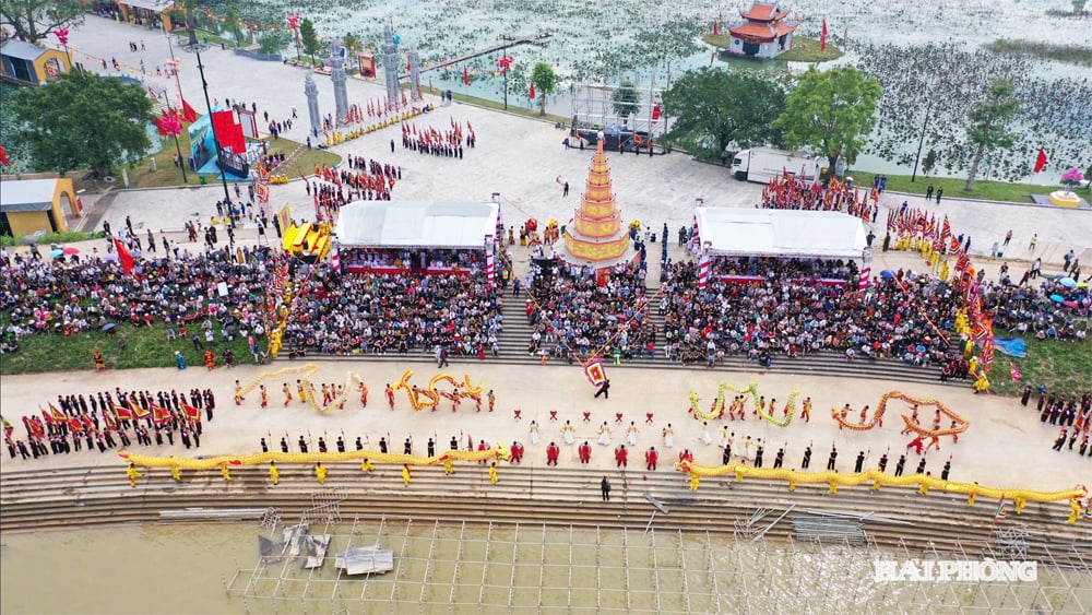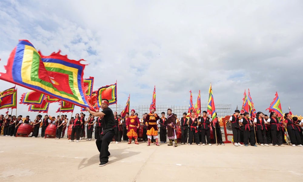 13 اکتوبر کی صبح، کیپ باک ٹیمپل (ٹران ہنگ ڈاؤ وارڈ، ہائی فونگ سٹی) کے سامنے دریائے لوک داؤ میں، 2025 کون سون - کیپ باک خزاں فیسٹیول کی آرگنائزنگ کمیٹی نے دریائے لوک ڈاؤ پر ایک فوجی اجتماعی پرفارمنس کا اہتمام کیا - ایک منفرد اور شاندار تقریب، جس میں ٹران ہنگ ڈاؤنگ فوجی کے بہادرانہ ماحول کو دوبارہ بنایا گیا۔ اور 13ویں صدی میں یوآن منگول حملہ آوروں کے خلاف مزاحمتی جنگ میں دائی ویت کی فوج اور عوام۔
