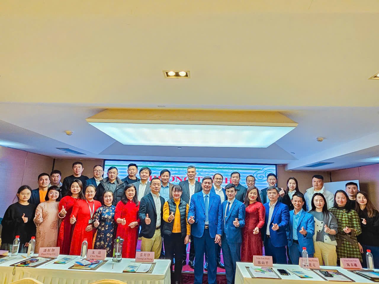 شمال مغربی صوبوں (ویتنام) اور صوبہ یونان (چین) کے مندوبین صوبہ یونان کے مینگزی شہر میں شمال مغربی سیاحت کے فروغ کی کانفرنس میں یادگاری تصاویر لے رہے ہیں۔