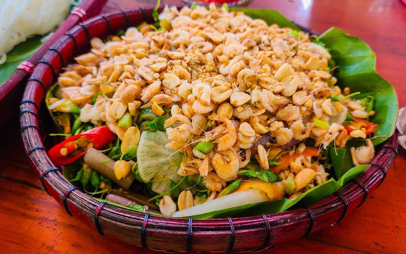 جھینگا اور پانی کا میموسا سلاد، سیلاب کے موسم کی ایک عام ڈش۔