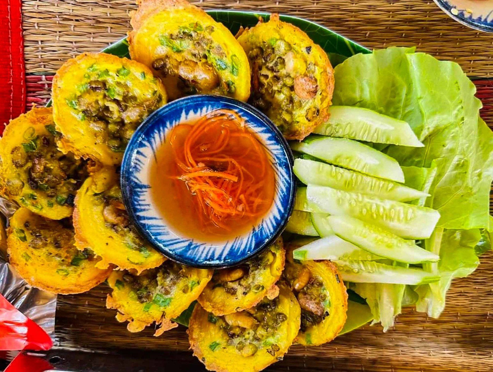 بھرنے میں ابلی ہوئی پھلیاں اور تلی ہوئی کیکڑے شامل ہیں۔ اس کے بعد، ناریل کا دودھ اور میٹھی اور کھٹی مچھلی کی چٹنی بنائیں، اور کچی سبزیاں، خاص طور پر ہری گوبھی، کھیرا، پھلیاں اور جڑی بوٹیاں تیار کریں۔