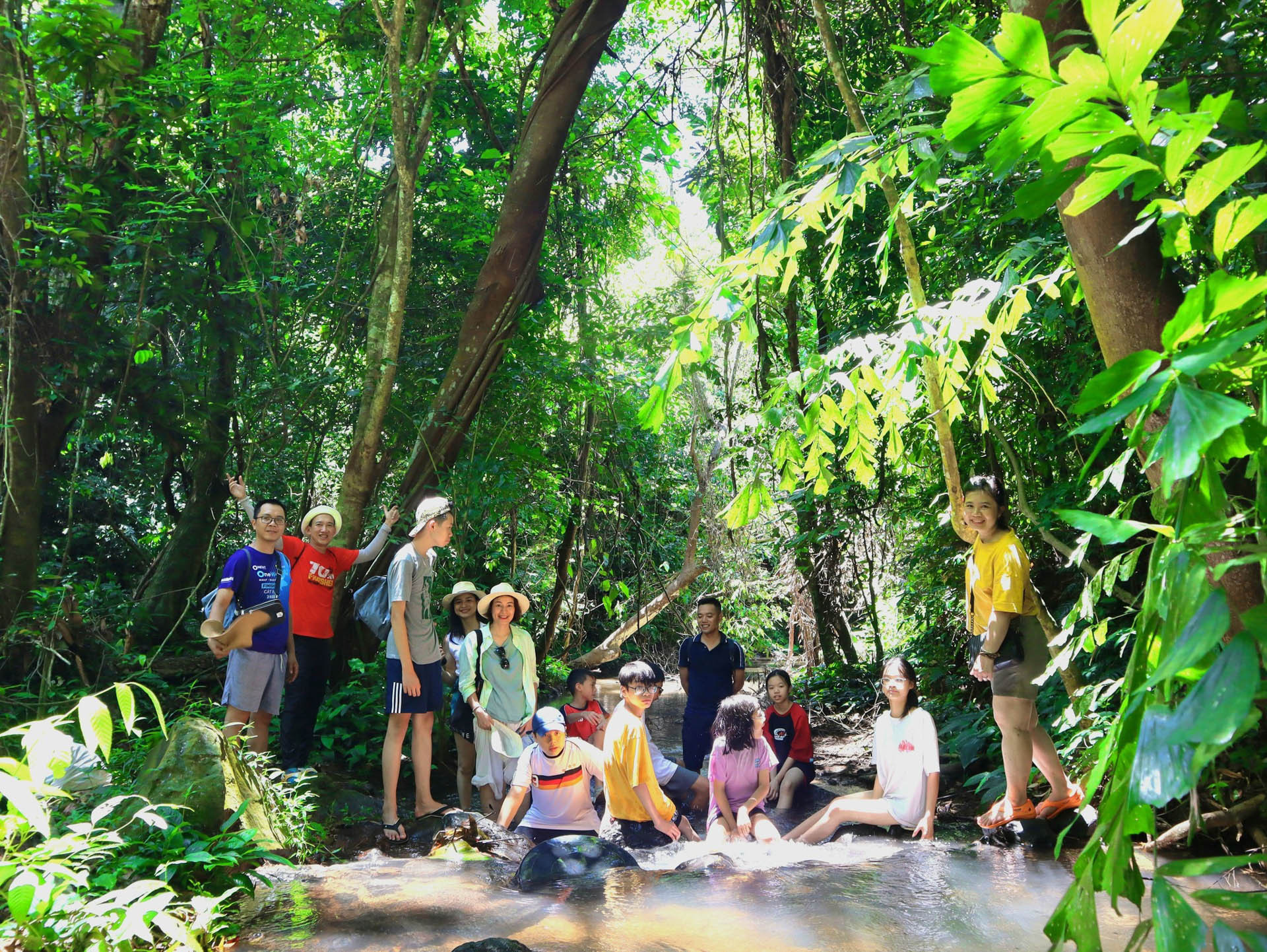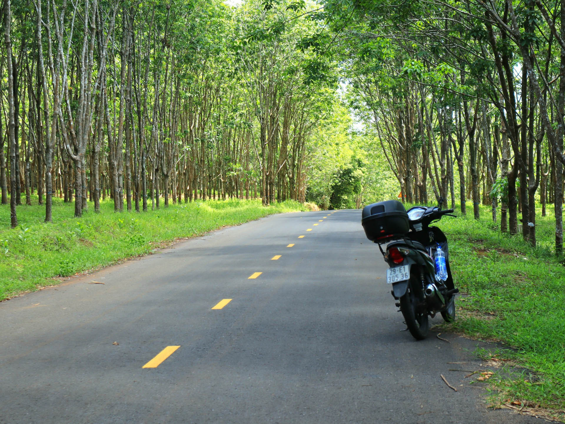 سیاح Ru Linh پرائمول جنگل یا ربڑ کے وسیع باغات کا تجربہ کرتے ہیں۔