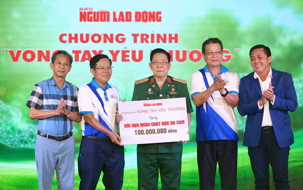 اخبار "نگوئی لاؤ ڈونگ" کے پروگرام "سرکل آف لیو" کی آرگنائزنگ کمیٹی نے ہو چی منہ سٹی میں ایسوسی ایشن آف وکٹمز آف ایجنٹ اورنج کو 100 ملین VND پیش کیا، جو کہ صحافی To Dinh-Tuan-Tuan-Perodi- E Lao- Tuan-Goi کی کتاب "30 سال کی صحافت کے نقوش" کی فروخت سے حاصل ہونے والے منافع سے لیا گیا ہے۔ ڈونگ" اس کے مطابق ایجنٹ اورنج کے 5 متاثرین کو بھی تحائف اور 10 لاکھ VND نقد ملے۔