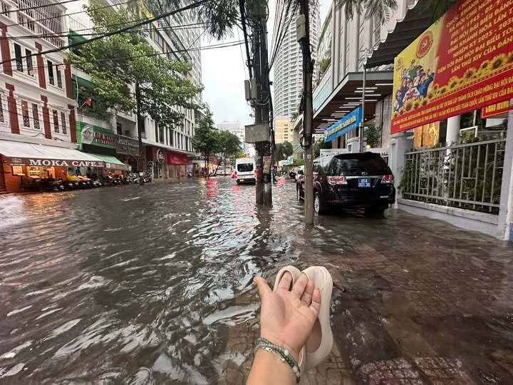 Luong Dinh Cua Street (Tay Nha Trang Ward) جزوی طور پر زیر آب آگئی جس کی وجہ سے لوگوں کو سفر کرنے میں دشواری کا سامنا کرنا پڑا۔ |