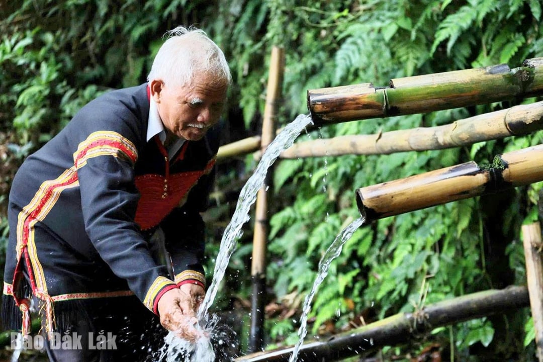 ہر صبح، بوڑھا آدمی Y Liem (Sah B hamlet, Ea Tul Commune) نئے دن کا استقبال کرنے کی رسم کے طور پر اپنا چہرہ دھونے کے لیے پانی کے گھاٹ پر جاتا ہے۔ |