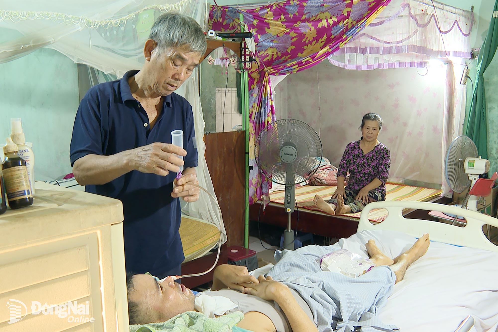 | جب اس کی بہو کام پر گئی اور اس کے پوتے اسکول گئے تو مسٹر چی نے اکیلے ہی اپنی بیوی کی دیکھ بھال کی جس کا حادثہ ہوا تھا اور اس کے بیٹے کو جس کو فالج کا دورہ پڑا تھا۔ تصویر: تھو ہین |