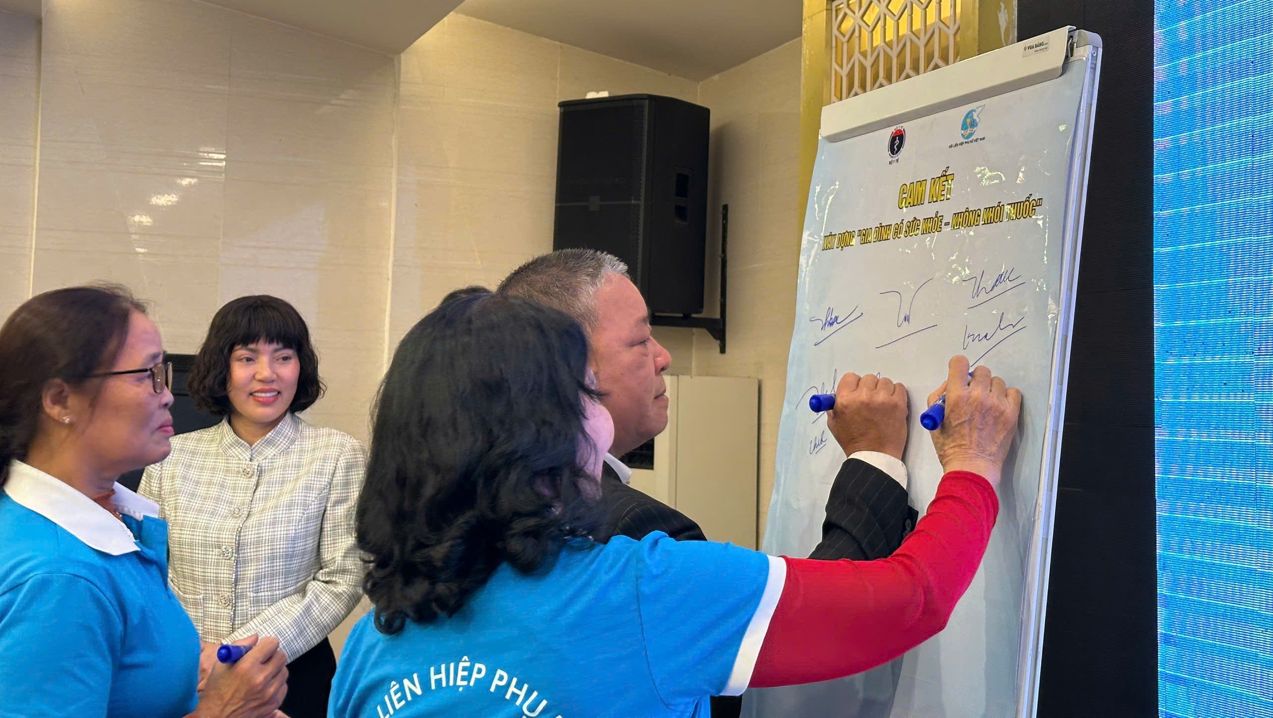 | Các đại biểu cùng ký cam kết chung tay phòng, chống tác hại của thuốc lá |