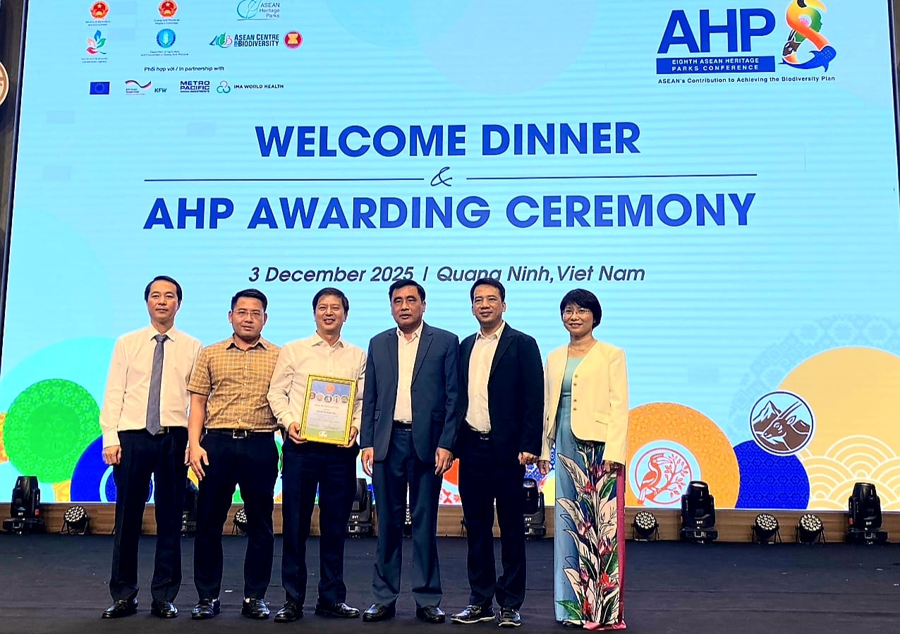 | Lãnh đạo Bộ Nông nghiệp và Môi trường trao chứng nhận Vườn Di sản ASEAN đối với Vườn Quốc gia Bạch Mã tại hội nghị AHP8 |
