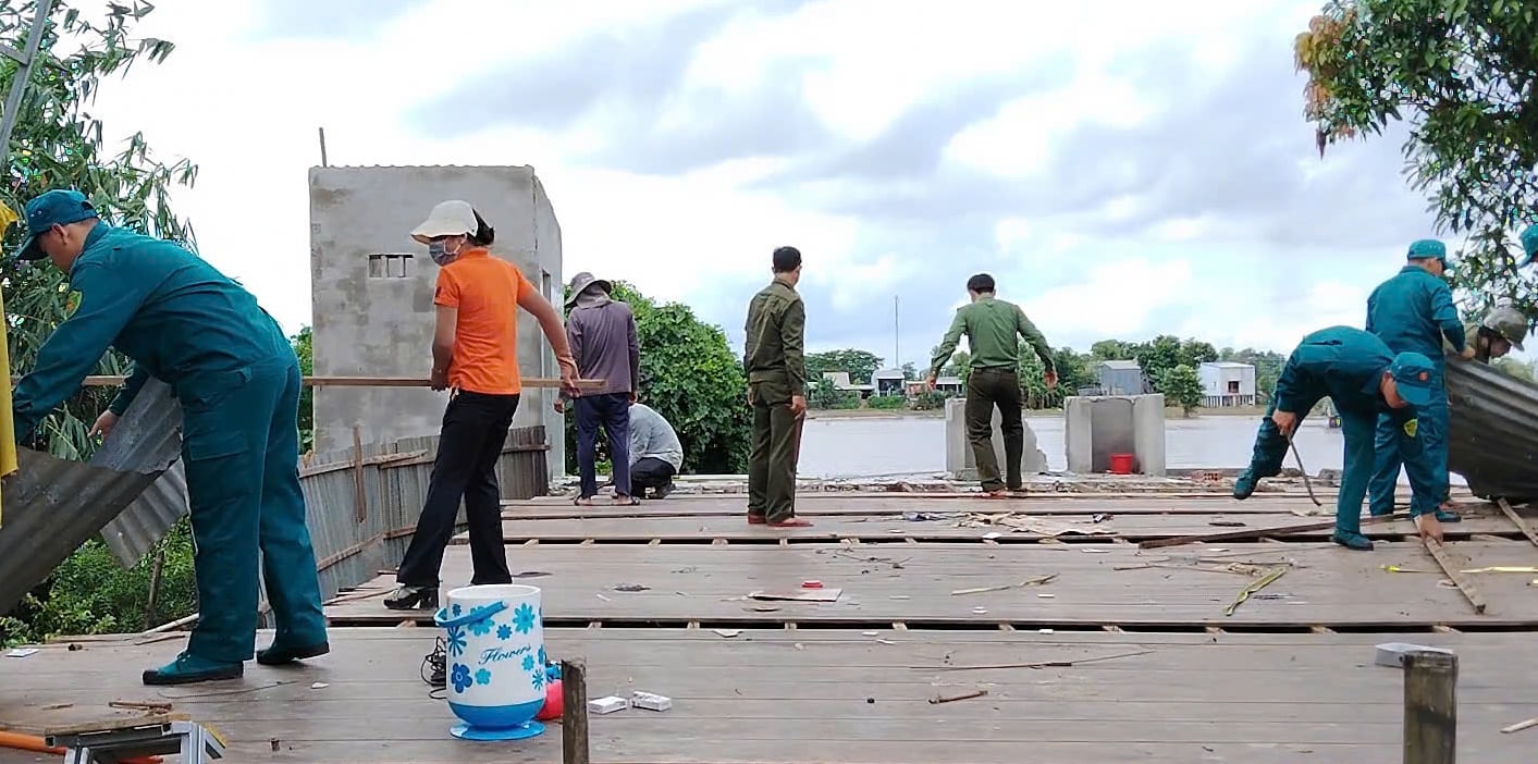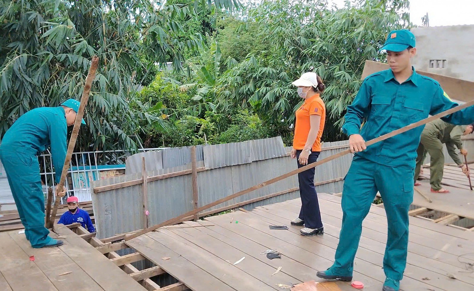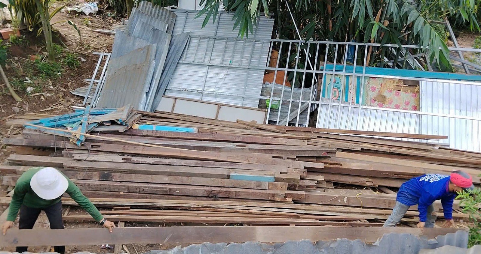 Lực lượng hỗ trợ người dân tháo dỡ nhà.