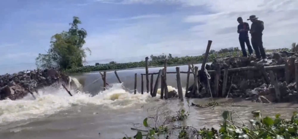 Một đoạn đê bao bị vỡ làm thiệt hại hoàn toàn hàng chục hécta lúa tại xã Tuyên Bình