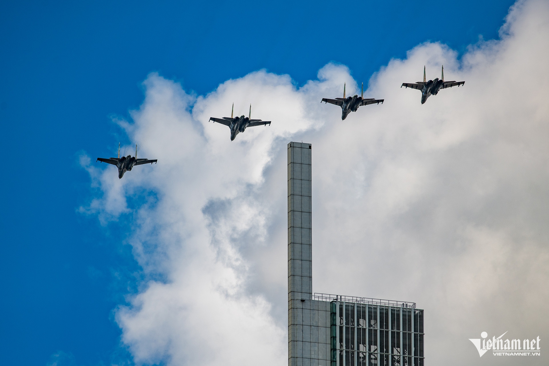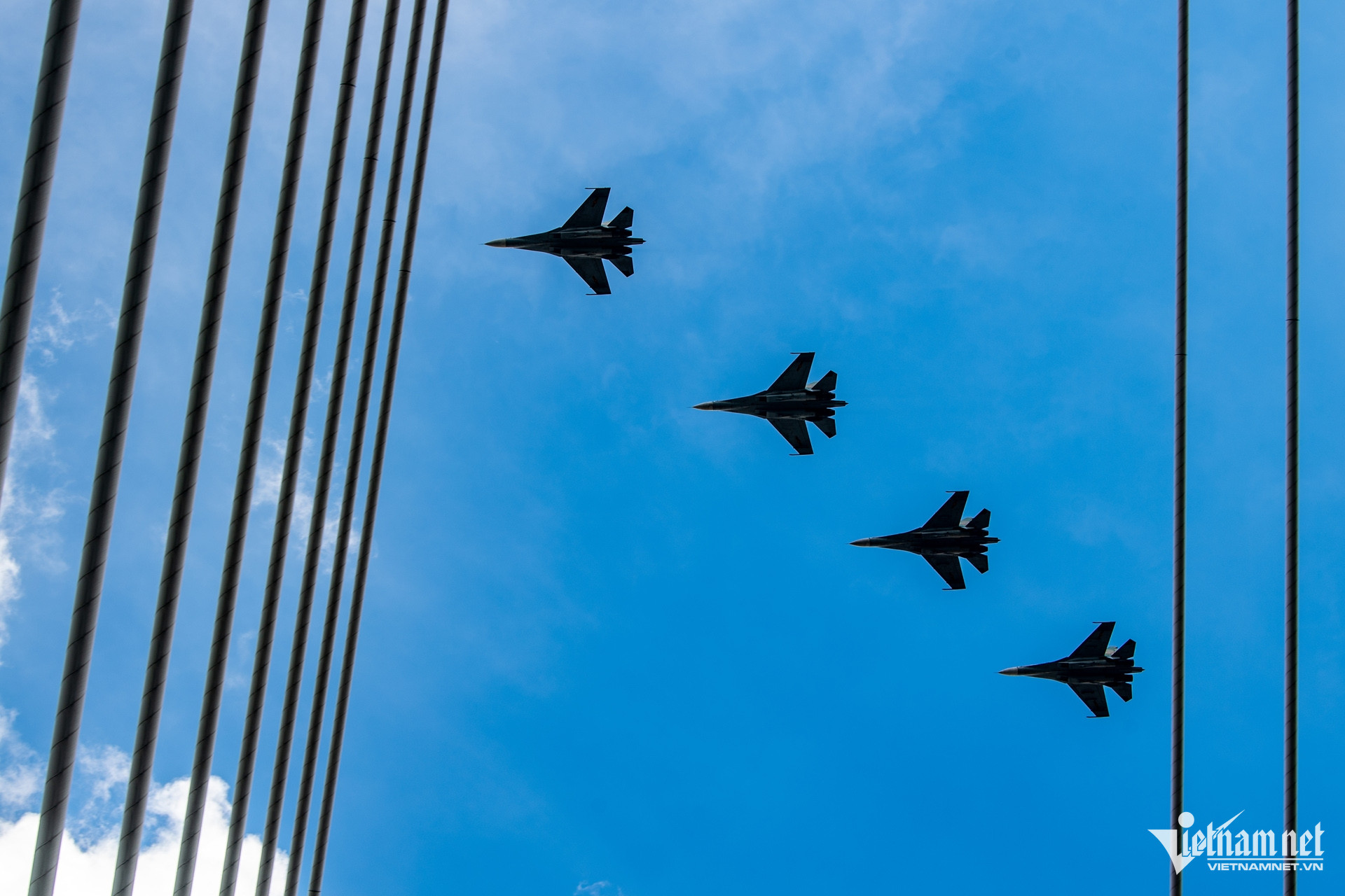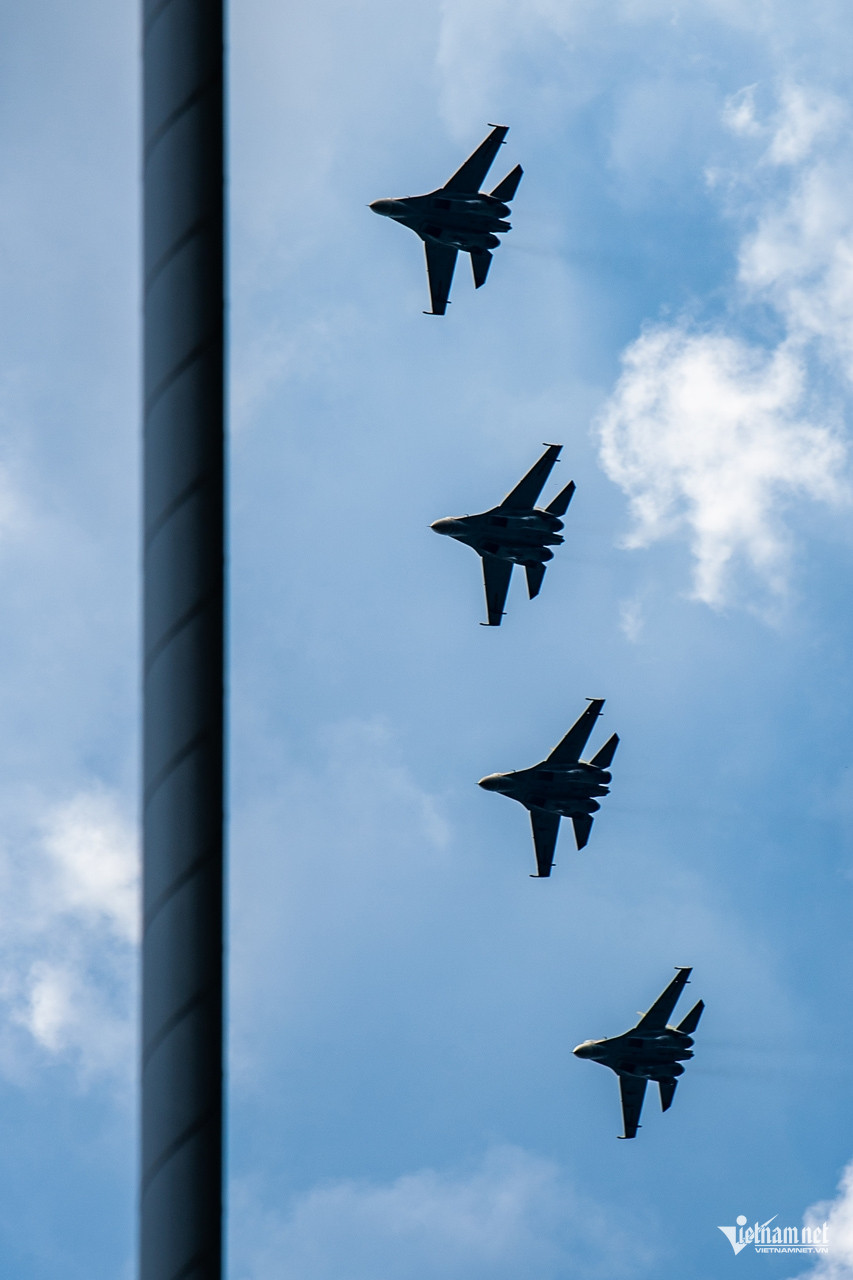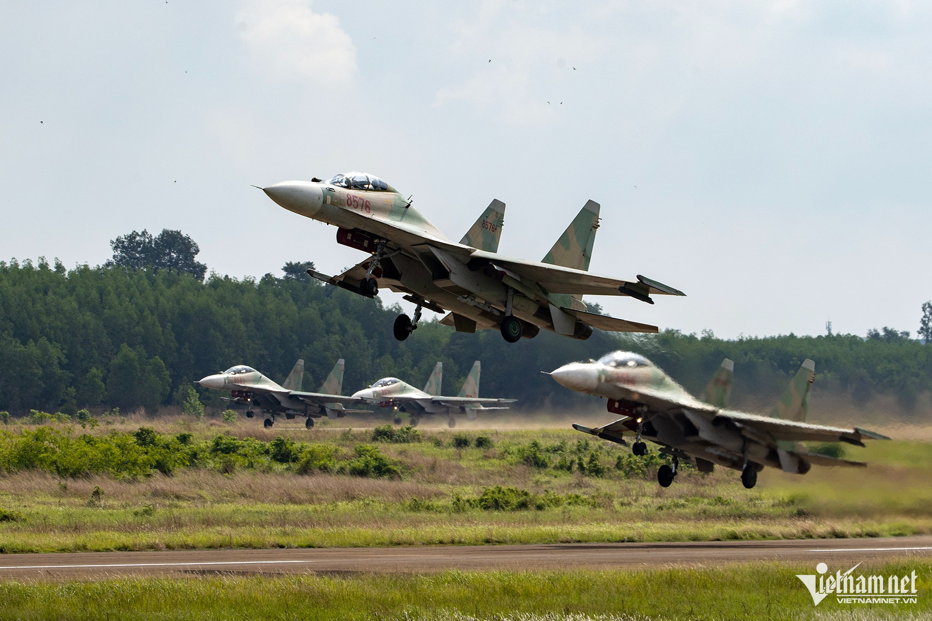 Tiếp nối trực thăng là những chiếc tiêm kích "hổ mang chúa" Su30MK2. Ảnh: Nguyễn Huế.