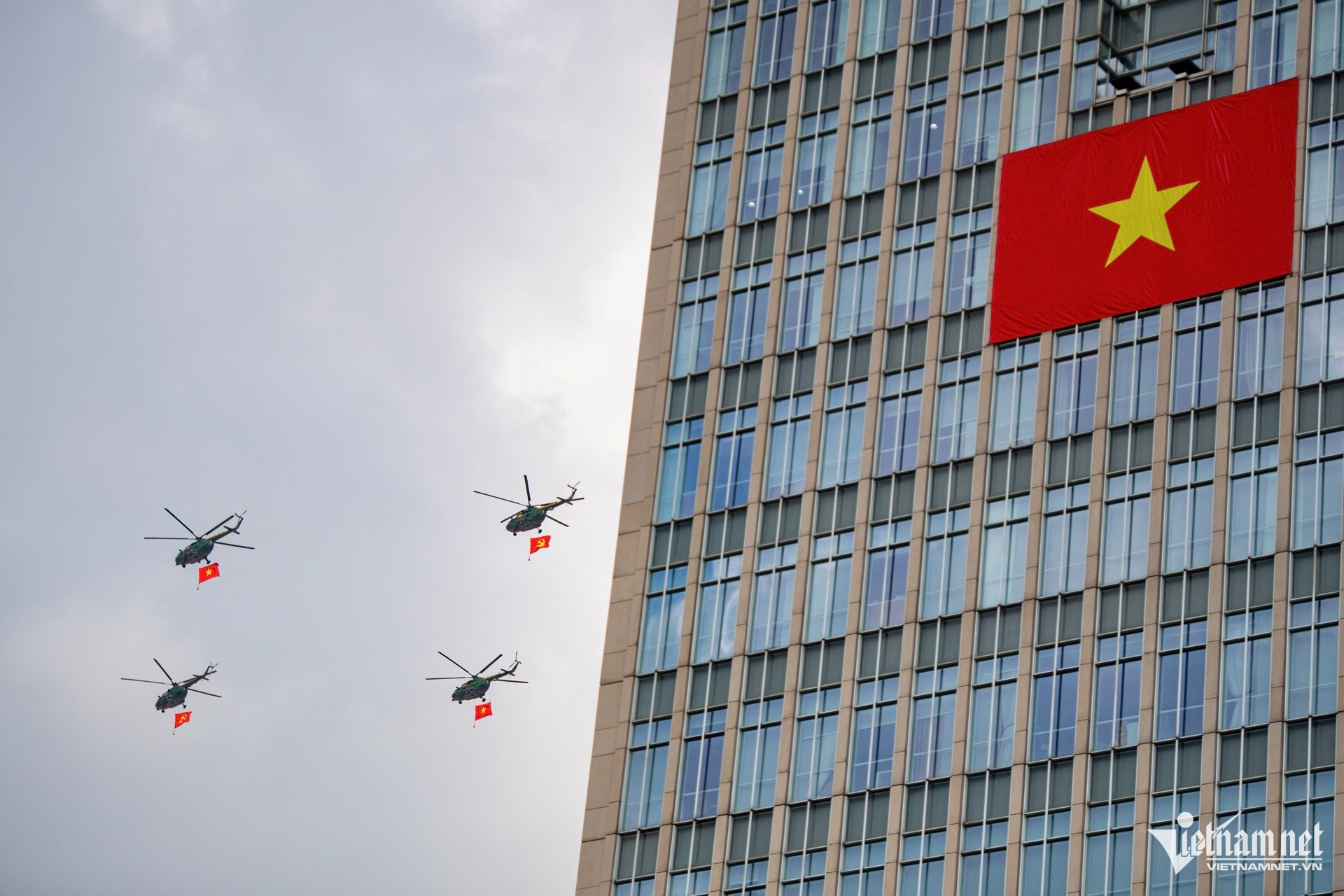 Phi đội trực thăng Mi-171, Mi-8, Mi-17 trong đội hình bay treo cờ dịp lễ này từng tham gia trình diễn tại những sự kiện lớn như lễ kỷ niệm 70 năm Chiến thắng Điện Biên Phủ, khai mạc Triển lãm Quốc phòng quốc tế Việt Nam 2024. Ảnh: Nguyễn Huế.