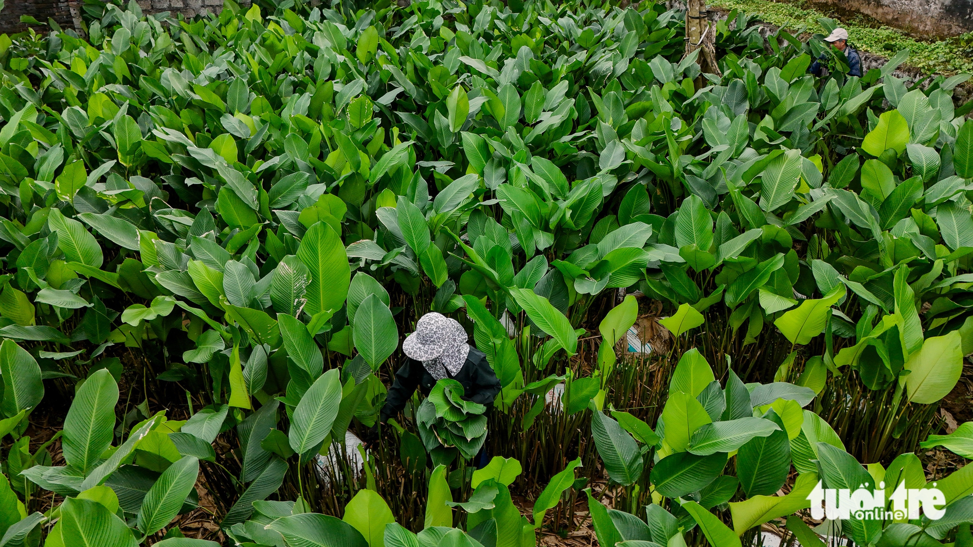 Cánh đồng lá dong nhuộm xanh một vùng quê ngoại thành Hà Nội trong những ngày giáp Tết Nguyên đán Bính Ngọ, nơi có khoảng 400 hộ dân gắn bó với nghề trồng lá dong - Ảnh: DANH KHANG
