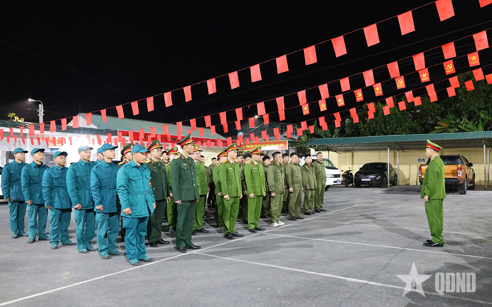 | Cán bộ, chiến sĩ Tiểu đội dân quân thường trực Hoành Mô cùng các lực lượng trên địa bàn chuẩn bị tuần tra trong dịp Tết Nguyên đán Bính Ngọ 2026. |